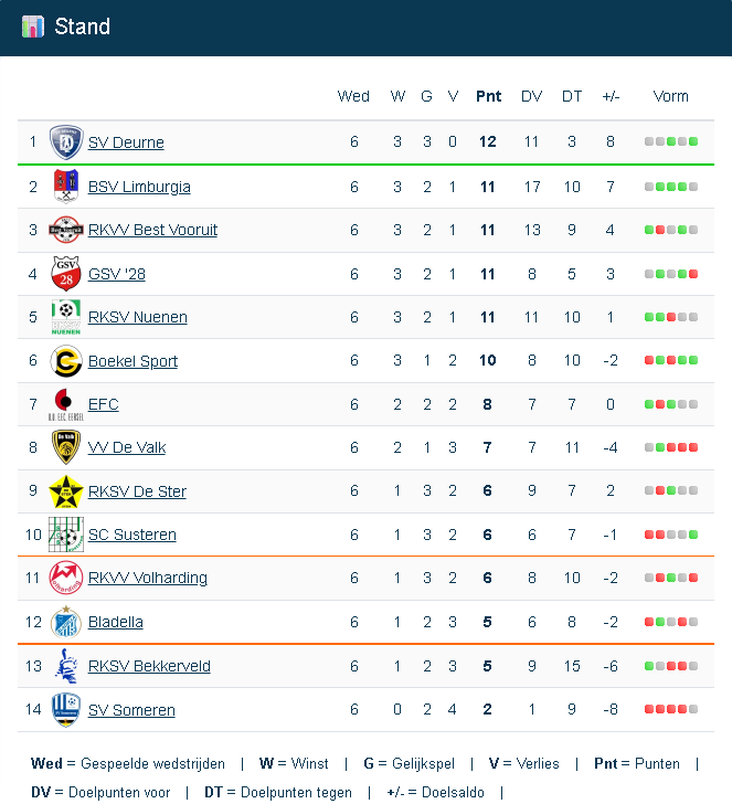 Stand en uitslagen