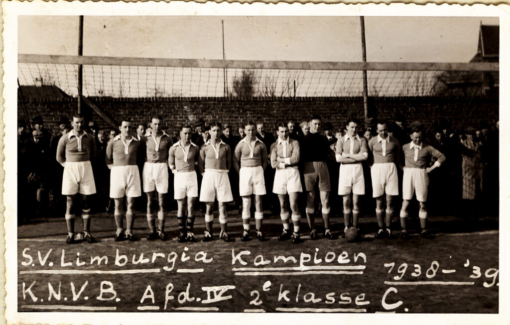 Sjra Jacobs en Jeu Theunissen worden geselecteerd voor het Zwaluwenelftal. In november werd er gespeeld tegen het destijds befaamde Norrköping uit Zweden. Limburgia weet deze wedstrijd met 3-2 te winnen. Ook werd er vriendschappelijk gespeeld tegen Lyra (Lierse SK) welke wedstrijd met 5-3 verloren werd en in de kuip tegen Feijenoord, waar met 4-2 gewonnen werd. Kampioenschappen zijn er voor het derde elftal (in de reserve 2e klasse) en bij de jeugd het B- en C-elftal. Limburgia werd in de competitie vierde achter MVV, Sittardse Boys en PSV. Een opmerkelijk feit uit deze competitie willen we u niet onthouden. Op 24 maart van dat jaar vond er een ontzettende mijnramp plaats op de Staatsmijn Hendrik, waarbij als een der eerste slachtoffers de vader van doelman Sjra Jacobs werd geborgen. Naar aanleiding hiervan verzocht Limburgia bij de KNVB om uitstel van de uitwedstrijd tegen PSV. Dit werd door de KNVB geweigerd. Het volgende artikel hierover werd geplaatst in de Limburgia Omroeper. De tekst hebben we in de originele staat overgenomen. 2 Winstpunten in mindering, enz. wegens??..Mijnramp ?! De mijnindustrie, die de laatste jaren zo in het brandpunt der belangstelling staat, werd weer eens het gesprek van den dag, toen op 24 Maart via Pers en Aether wereldkundig werd, dat de Hendrik door een der ergste mijnrampen in onze historie werd getroffen. Wat dit voor onze vereeniging, wier leden practisch allen mijnwerkers zijn, beteekent, zal iedereen zonder meer duidelijk zijn. In ons eerste elftal b.v. zijn 10 mijnwerkers opgesteld, waarvan 7 ondergronders. Het hoeft daarom geen verwondering te verwekken, dat voor ons reeds bij voorbaat vaststond, dat onder deze droevige omstandigheden, die zich temidden van onze arbeidskameraden afspeelden, niet aan voetballen gedacht kon worden. Ons Bestuur stelde zich daarom met den KNVB in verbinding en voor de eerste maal in onze voetballoopbaan werd om uitstel gevraagd. Dit was dus voor den wedstrijd tegen PSV in Eindhoven op 30 Maart. De omstandigheden werden klaar en duidelijk aan de Bondsinstantie voorgelegd, doch als resultaat kregen we nul op request. Nadat Woensdag in een Bestuursvergadering en bloc werd besloten om in geen geval te spelen, was een telegram te elfder ure van dhr. Lotsy (voorzitter Nederlandse voetbalbond) aanleiding om op Zaterdag nogmaals de koppen bij elkaar te steken en in een nieuwe vergadering ons standpunt nader te bepalen. Uiteindelijk werd toen maar besloten om voor de stok achter de deur te zwichten en den wedstrijd tegen PSV onder protest te spelen. Wie een greintje begrip heeft van het kameraadschaps- en solidariteitsgevoel tusschen de mijnwerkers onderling, kan begrijpen, welke zware gang onze reis naar PSV beteekende en in welke timide en geprikkelde stemming de reis naar Eindhoven aanvaard werd. De houding van den KNVB is verder onverklaarbaar als wij bedenken dat voor Limburgia op Paaschmaandag geen wedstrijd werd vastgesteld. De motiveering van den KNVB “wegens het vergevorderde seizoen” blijkt dus slechts een “wassen neus” en kan slechts als dictatuur gebrandmerkt worden. Tenslotte willen wij hier nog aan toevoegen, dat ons bij de uitstel-weigering werd gezegd, dat ’t gewenscht was om zoo spoedig mogelijk naar normale verhoudingen terug te keeren. Als wij dan echter bedenken dat op dat moment slechts 6 van de 13 slachtoffers geborgen waren en dat men ons verplichtte te spelen, terwijl er nog 4 overleden arbeidskameraden waren opgebaard, krijgen wij een heel eigenaardig idee over de opvattingen van de betreffende Heeren. Het geheel heeft bij de Mijnbevolking een misselijken indruk gemaakt en wij willen dit artikel dan ook niet besluiten zonder een felle aanklacht tegen het KNVB-Bestuur in deze kwestie. Een protestschrijven van dezelfde strekking is inmiddels aan het KNVB-Bestuur verzonden.